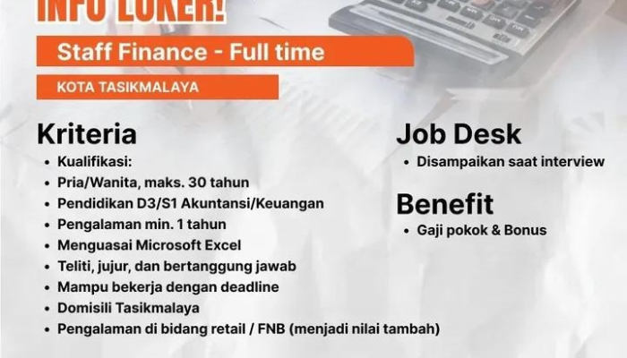 Lowongan Kerja Staff Finance Golden Street Food Tasikmalaya Terbaru 2026