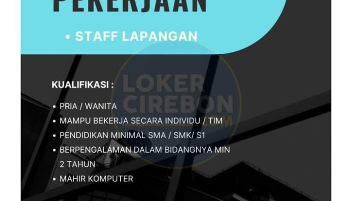 Apakah Anda seorang profesional yang menyukai tantangan kerja dinamis di luar ruangan? PT Tri Bangun Bersatu sedang memberikan kesempatan bagi talenta-talenta berdedikasi untuk bergabung dalam tim kami sebagai Staff Lapangan. Kami mencari individu yang siap bekerja keras, teliti, dan memiliki integritas tinggi untuk mendukung operasional perusahaan di wilayah Cirebon.