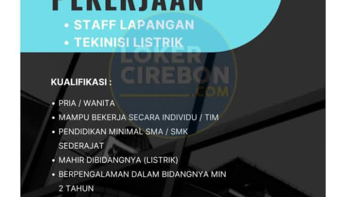 Untuk melamar Loker Staff Lapangan & Teknisi Listrik di Cirebon ini, calon pelamar harus memenuhi kriteria dan persyaratan sebagai berikut: