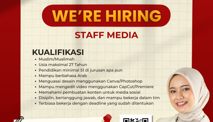 Apakah Anda seorang kreatif yang mahir dalam desain grafis, editing video, dan fasih berbahasa Arab? Afwaja Center saat ini sedang membuka kesempatan emas bagi talenta muda untuk bergabung sebagai Staff Media.