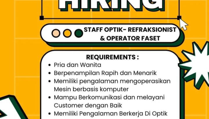 - Memiliki pengalaman bekerja di optik minimal 1 tahun.