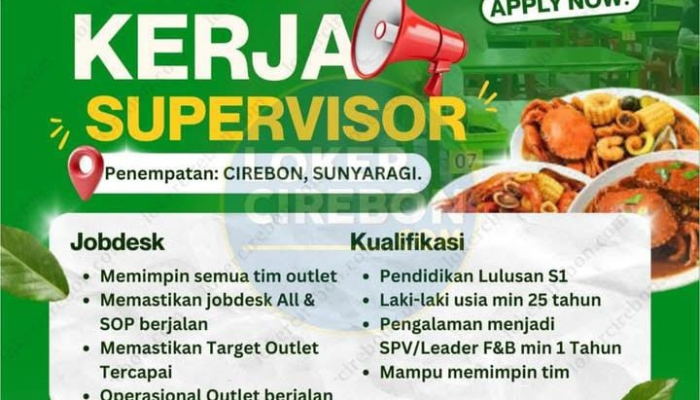 Apakah Anda seorang pemimpin berbakat di industri kuliner yang sedang mencari tantangan baru? Ini adalah kesempatan emas bagi Anda! Muphus Seafood Group, perusahaan kuliner yang terus berkembang pesat, sedang membuka pintu bagi profesional muda untuk bergabung dan tumbuh bersama sebagai Supervisor Outlet untuk penempatan di Sunyaragi, Cirebon.