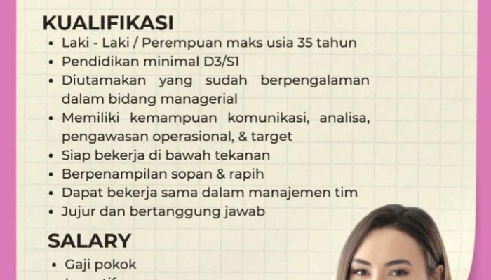- Pengalaman: Diutamakan bagi kandidat yang sudah berpengalaman di bidang manajerial.