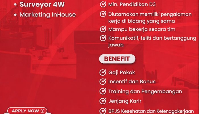 Sebagai Surveyor 4W, Anda akan bertanggung jawab untuk melakukan verifikasi data lapangan, menganalisis kelayakan kredit nasabah untuk pembiayaan kendaraan roda empat, serta memastikan dokumen pendukung akurat guna meminimalisir risiko perusahaan.