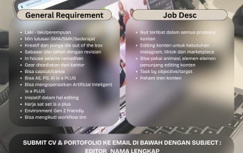 - Keahlian Tambahan: Menjadi nilai tambah jika kandidat memiliki kemampuan dalam mengedit video.