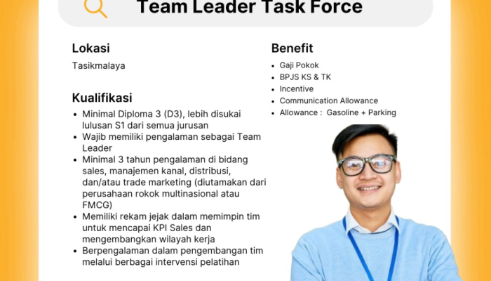 Staffinc kembali membuka kesempatan berkarier bagi talenta terbaik di wilayah Tasikmalaya! Tiga posisi strategis dari berbagai brand ternama saat ini membutuhkan kandidat yang berpengalaman, komunikatif, dan siap berkontribusi dalam perkembangan perusahaan.