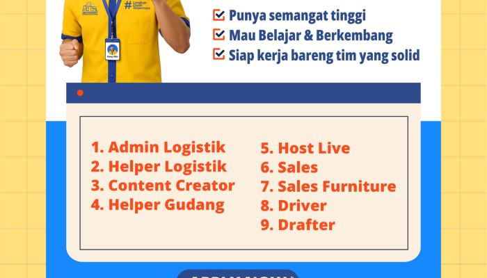 Asia Bangunan, supermarket bahan bangunan terkemuka di Tasikmalaya, sedang membuka kesempatan karier besar-besaran bagi Anda yang bersemangat, mau belajar, dan ingin berkembang bersama tim yang solid.