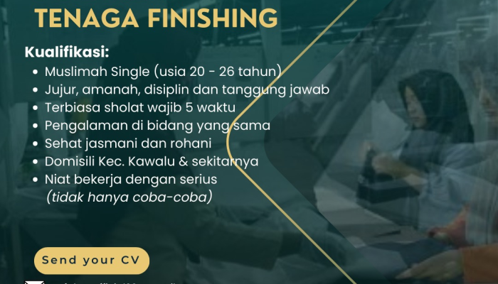 Baca terus artikel ini untuk mengetahui detail kualifikasi, benefit, dan cara melamar loker Tenaga Finishing Muslimah Single ini.