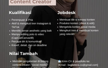 • Memiliki niat bekerja dengan serius dan berdedikasi tinggi (tidak hanya coba-coba).