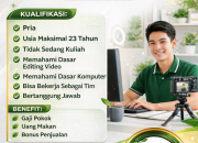 Lowongan ini sangat terbuka bagi Anda yang ingin memulai karir dari nol (tanpa pengalaman). Berikut kriteria yang dibutuhkan: