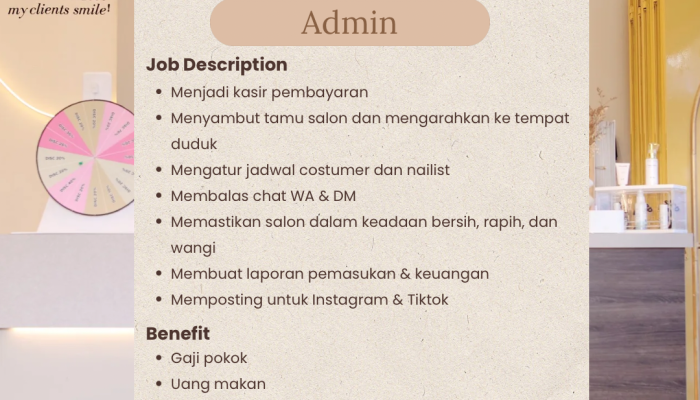 Be Bless Nailbar kembali membuka kesempatan berkarier bagi Anda yang berdedikasi, teliti, dan memiliki ketertarikan pada dunia kecantikan. Tersedia dua posisi yang dibutuhkan, yaitu Nailist dan Admin. Berikut informasi lengkapnya: