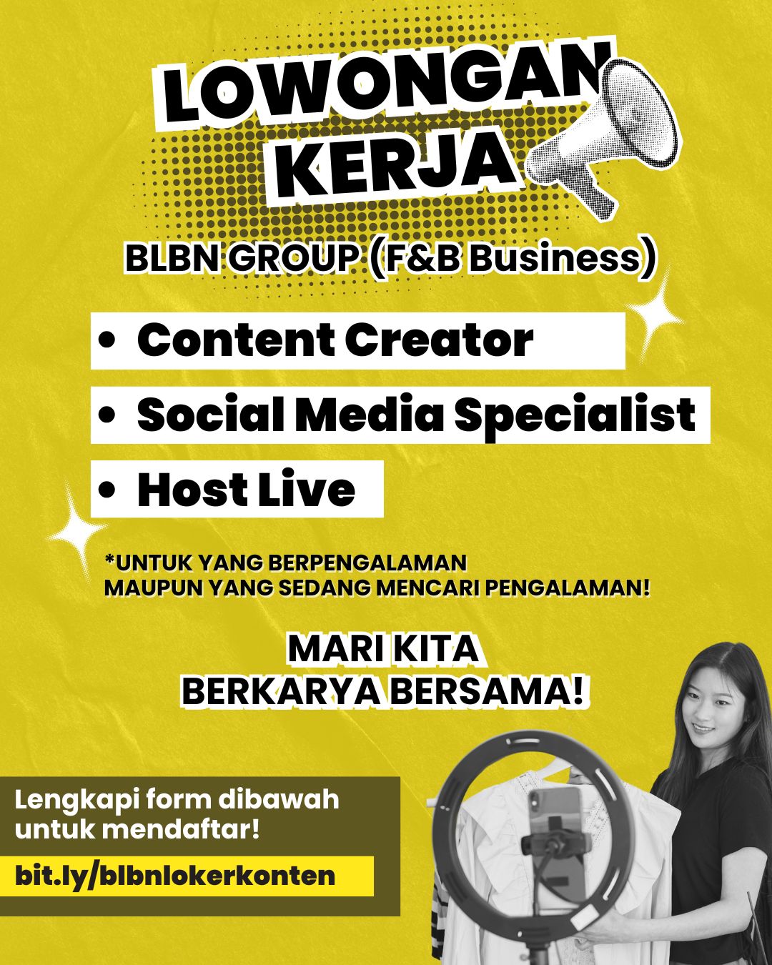 BLBN Group, perusahaan di bidang F&B (Food & Beverage), membuka kesempatan bagi individu kreatif untuk bergabung dalam tim mereka. Jika Anda memiliki passion dalam dunia digital dan media sosial, ini adalah kesempatan emas untuk mengembangkan karier Anda!