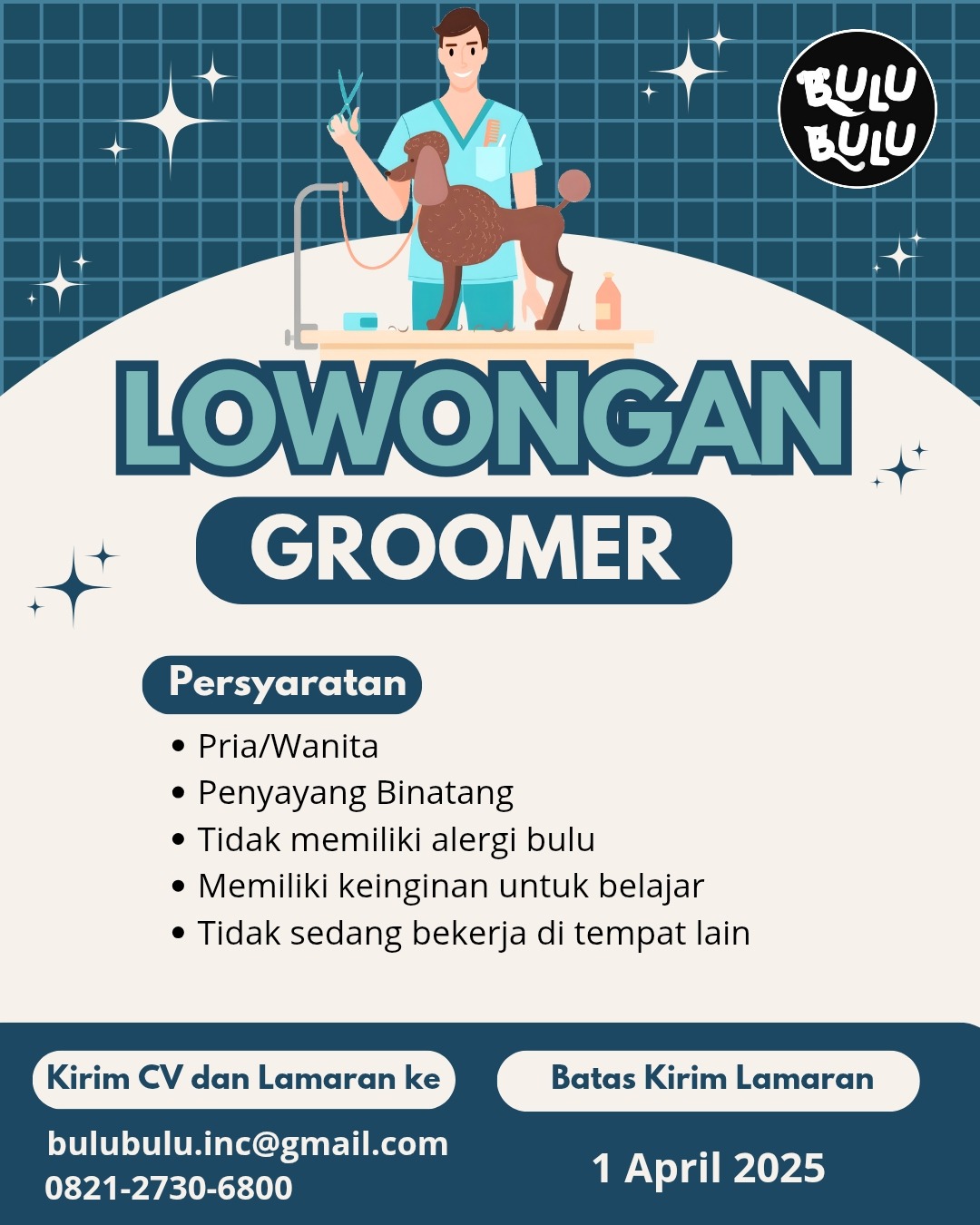 Bulu Bulu membuka kesempatan bagi pecinta hewan untuk bergabung sebagai Groomer.