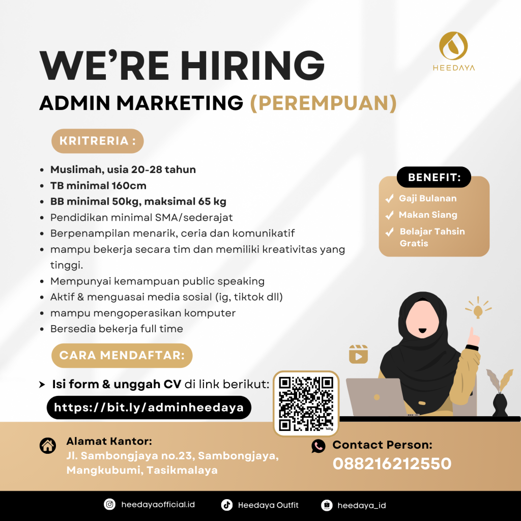 Isi form & unggah CV di link berikut: https://bit.ly/adminheedaya