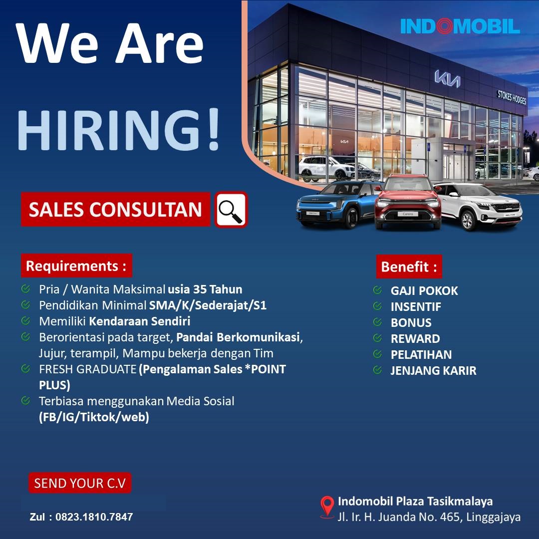 Indomobil Plaza Tasikmalaya membuka kesempatan bagi Anda yang ingin berkarir di industri otomotif sebagai Sales Consultant. Ini adalah kesempatan emas bagi individu yang memiliki semangat tinggi dalam dunia penjualan dan komunikasi.