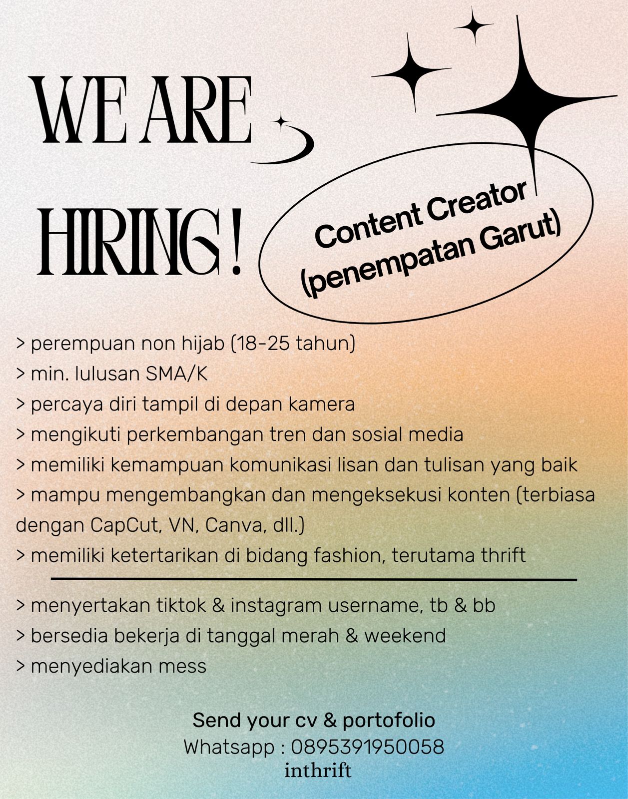 Lokertasikmalaya.ID – Update Info lowongan Kerja 21 Juli 2025, Lowongan Kerja Content Creator di Inthrift (Penempatan Garut)