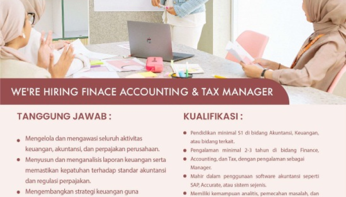 • Pendidikan minimal S1 di bidang Akuntansi, Keuangan, atau bidang terkait.