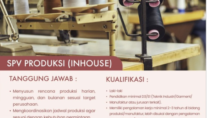 • Pendidikan minimal D3/S1 (Teknik Industri/Garmen/Manufaktur atau jurusan terkait).
