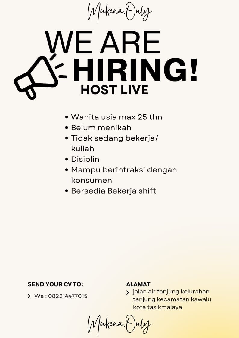 Lokertasikmalaya.ID – Update Info lowongan Kerja 24 April 2025 Lowongan Kerja Mukena Only