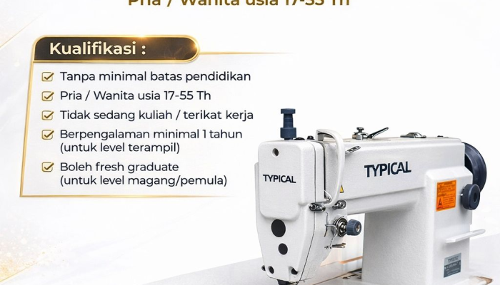 • Level Terampil: Minimal berpengalaman 1 tahun di bidang menjahit.