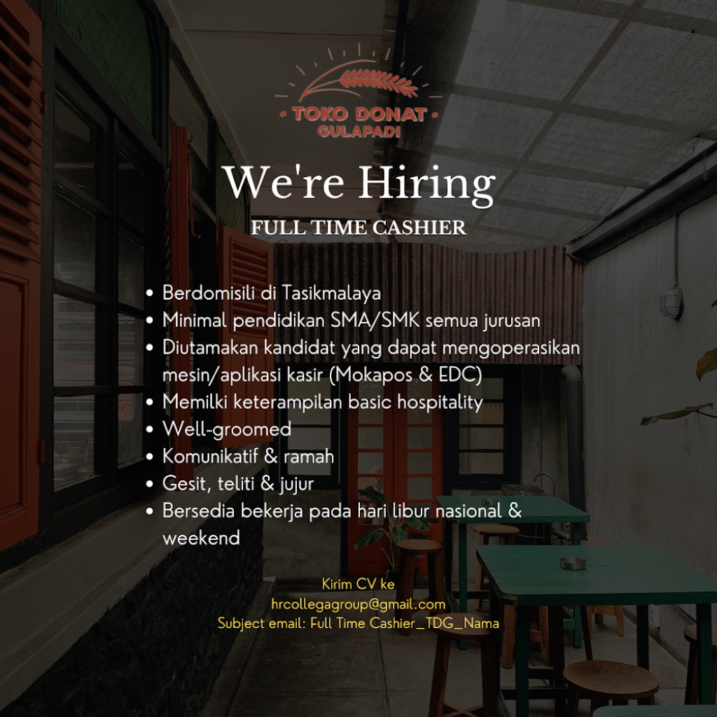Lokertasikmalaya.ID – Update Info lowongan Kerja 2 Oktober 2024, Lowongan Kerja Toko Donat Gulapadi