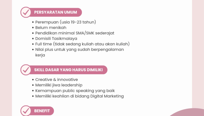 - Domisili: Wajib berdomisili di Tasikmalaya.