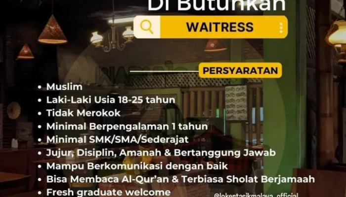 Apakah Anda seorang pemuda yang berdedikasi, disiplin, dan sedang mencari peluang karir di bidang kuliner? Warung Nasi Hawu Nini, salah satu destinasi kuliner populer di Tasikmalaya, saat ini sedang membuka lowongan kerja untuk posisi Waitress. Kami mengundang Anda yang memiliki semangat pelayanan tinggi untuk bergabung dan berkembang bersama tim kami.