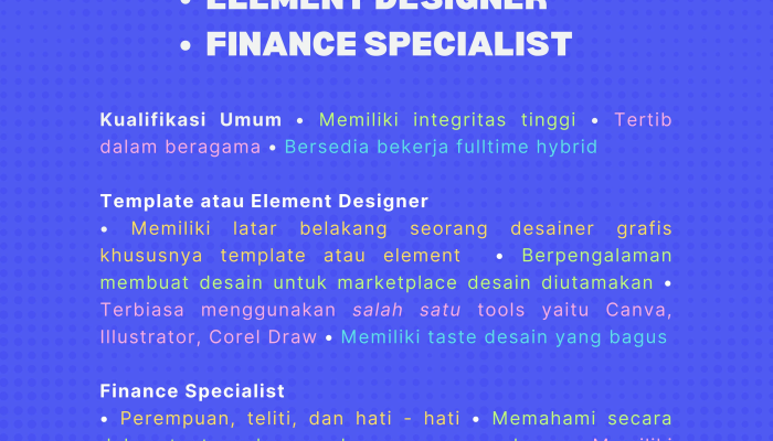 - Terbiasa menggunakan salah satu tools (Canva, Illustrator, atau CorelDraw)