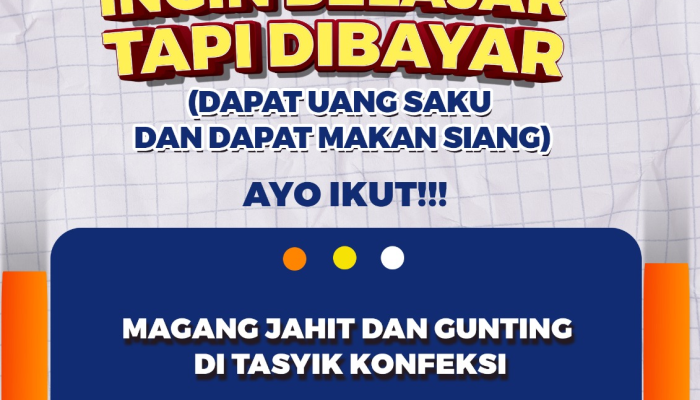 Apakah Anda sedang tidak memiliki kesibukan dan ingin memiliki keahlian baru di bidang garmen? Tasyik Konfeksi, salah satu unit usaha konfeksi berkembang di Tasikmalaya, membuka kesempatan emas bagi Anda yang ingin mengikuti program Magang Jahit dan Gunting.