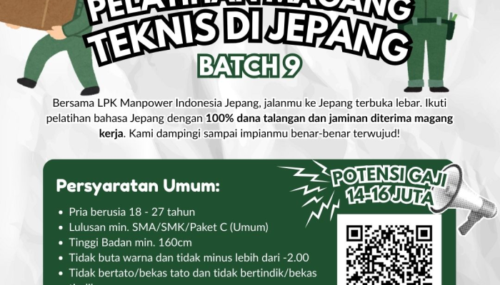 Apakah Anda memimpikan karir cemerlang di luar negeri dengan penghasilan tinggi? LPK Manpower Indonesia Jepang kembali membuka kesempatan emas melalui Open Recruitment Pelatihan Magang Teknis di Jepang Batch 9. Ini adalah jalan pintas bagi Anda yang ingin mengubah masa depan dan merasakan pengalaman bekerja dengan teknologi maju di Negeri Sakura.