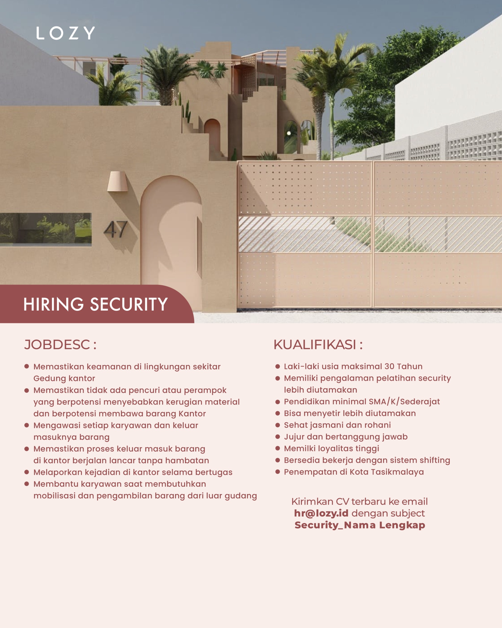 Kirim CV ke hr@lozy.id