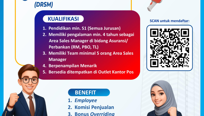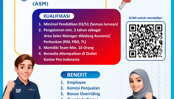 Apakah Anda seorang pemimpin tim yang berorientasi pada target dan memiliki pengalaman di bidang sales asuransi? POS IND dan Heksa Insurance membuka kesempatan bagi Anda untuk bergabung sebagai Area Sales Manager (ASM). Jika Anda siap memimpin tim untuk mencapai kesuksesan, ini adalah peluang yang tepat untuk membangun karir yang stabil dan menjanjikan bersama kami.