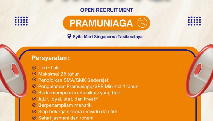 Syifamart Singaparna Tasikmalaya membuka kesempatan bagi individu yang berdedikasi dan terampil untuk bergabung sebagai Pramuniaga. Lowongan ini menawarkan peluang bagi Anda yang ingin berkarir di industri ritel dan siap untuk bekerja di lingkungan yang dinamis. Syifamart mencari kandidat yang berjenis kelamin laki-laki, berusia maksimal 25 tahun, dan memiliki pendidikan minimal SMA/SMK sederajat. Jika Anda memiliki pengalaman sebagai pramuniaga atau SPB minimal 1 tahun dan memiliki kemampuan komunikasi yang baik, ini adalah kesempatan yang tepat untuk Anda.